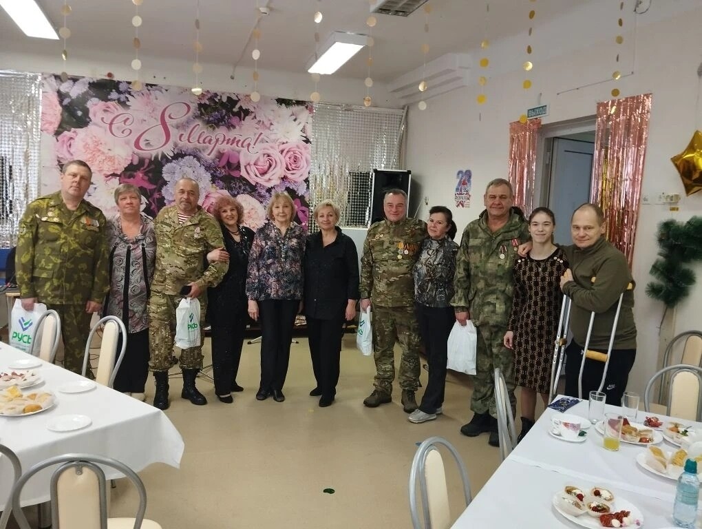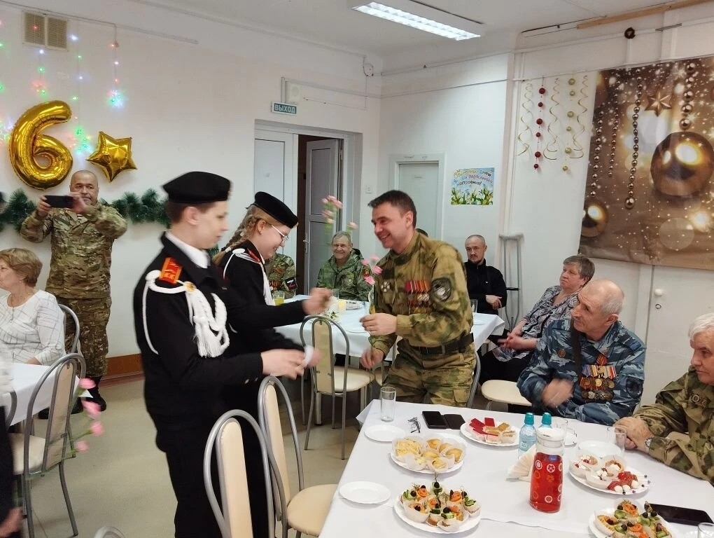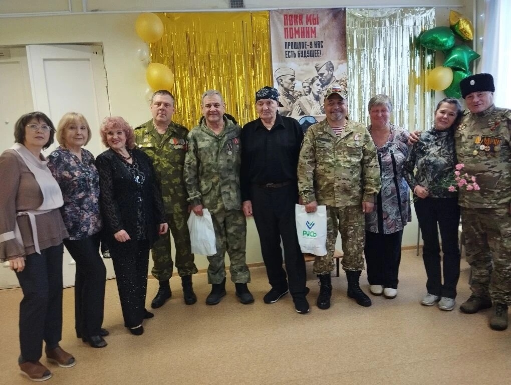 В теплой душевной обстановке, за чашечкой чая их поздравили заместитель директора БФ «РУСЬ» Лукина Любовь Александровна, кадеты Росгвардии и творческий коллектив благотворительного фонта. Вечер удался. Трогательно звучал рассказ супружеской пары о времени когда глава семьи находился на передовой! Военнослужащие дали свой наказ молодому поколению, пожелали кадетам успехов в учебе, отличных навыков в военной подготовке. Вместе пели, играли в игры. Ветераны получили подарки от благотворительного фонда.
